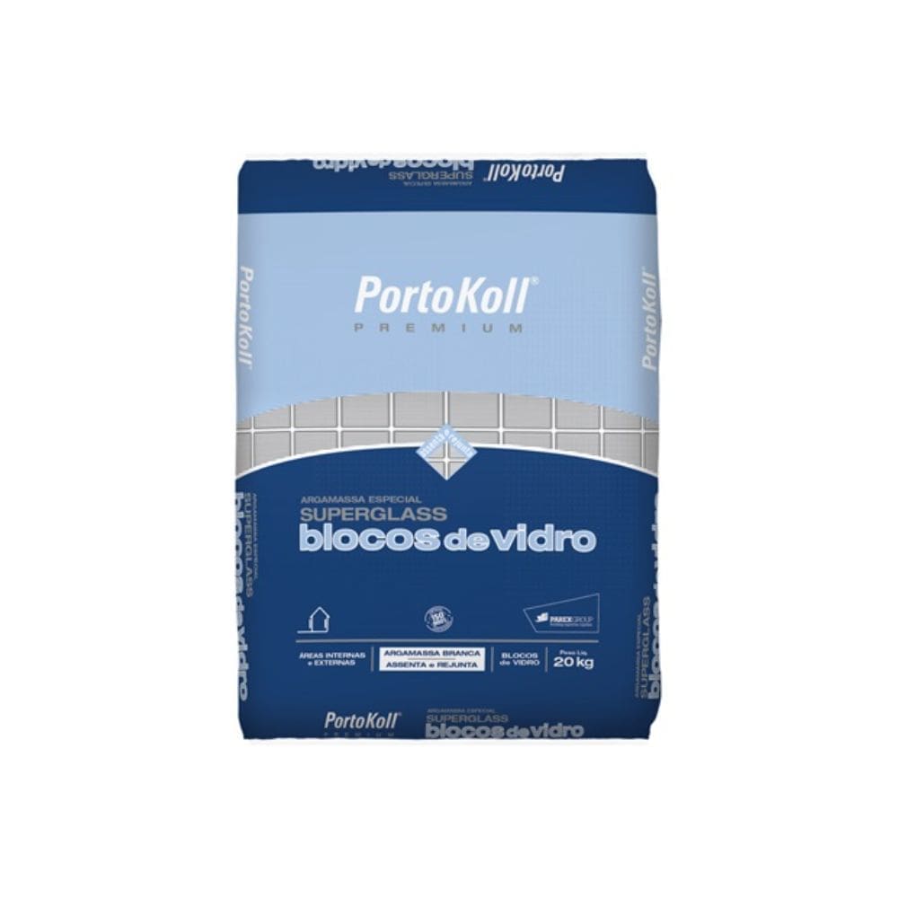 A Argamassa para Blocos de Vidro Superglass Branca de 20Kg da PortoKoll assenta e rejunta blocos de vidro tanto em áreas internas como em áreas externas com aplicação rápida, simples e excelente acabamento. Para sua mistura, necessita apenas de água e o pó da argamassa, resultando em uma massa branca e aderente.