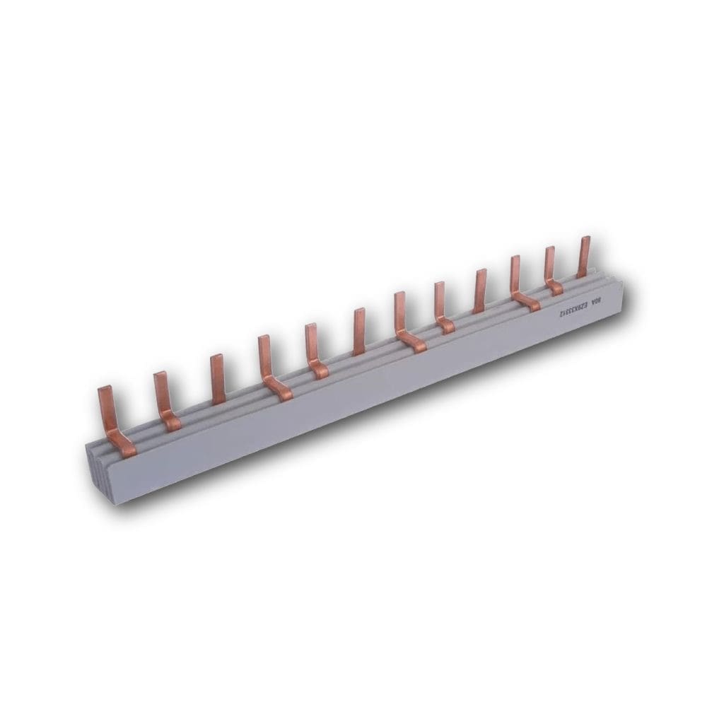 Os barramentos, ou pente de conexão foram desenvolvidos para facilitar a vida do eletricista ao realizar a ligação dos dispositivos de proteção de maneira segura e rápida. Barramento pente tripolar de 12 polos com capacidade de 80A.