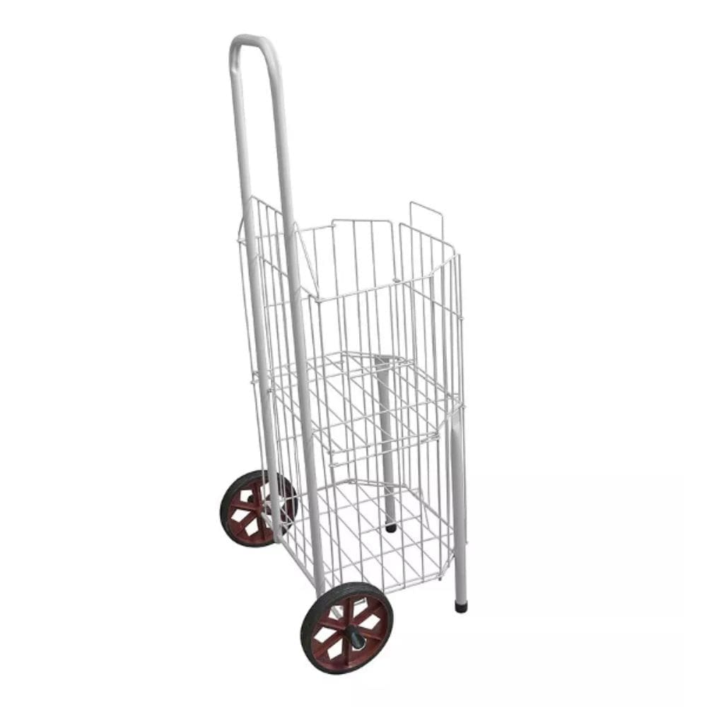 Carrinho leve e prático para compras em feiras, supermercados, etc. Aramado e reforçado. Acomoda adequadamente suas frutas, verduras e legumes.