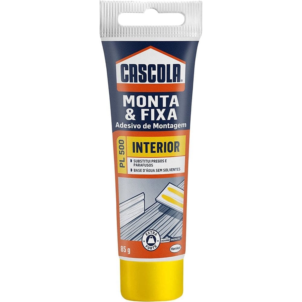Cascola Monta e Fixa PL 500 é uma cola de montagem de alta resistência indicada para instalações, decorações e reparos internos, sendo uma solução ideial para colagem de madeira, MDF, compensando, drywall, polestireno expandido, cerâmica, concreto, metal, pedra, vidro e cortiça. Prático de usar, Cascola Monta & Fixa PL 500 garante a eficiência na aplicação, uma vez que o produto proporciona uma excelente colagem e força final, eliminando a necessidade de furar, parafusar ou pregar.• Agarre imediato • Alta força de colagem • Não escorre • Resistente • Tecnologia à base d’água (odor suave, livre de solventes orgânicos) • Tempo de ajuste de 10 minutos • Permite pintura • Uso de ambientes internos • Ótimo acabamento • Fácil e prático de usar • Uma das superfícies deve ser porosa