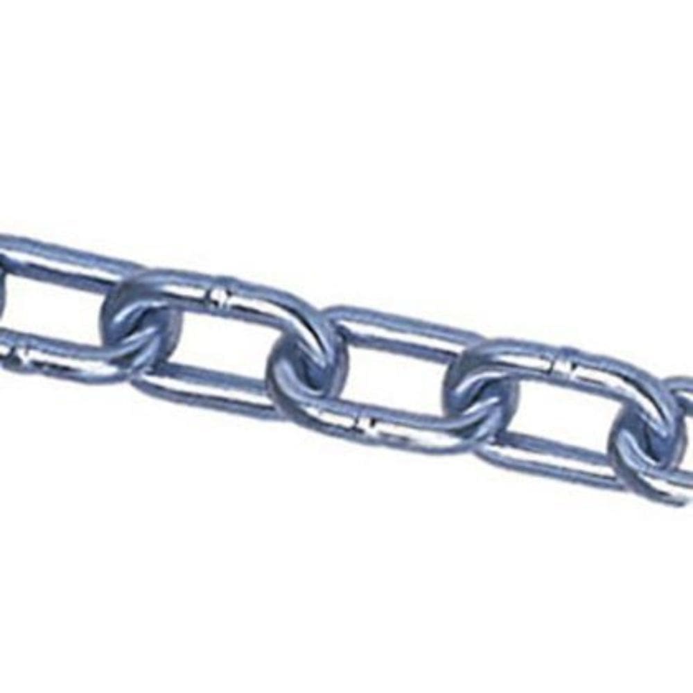 Corrente São Raphael Zincada Elo Soldado 5,0mm. Diâmetro: mm: 5,0. pol.: 3/16. Dimensões Elos (mm) A x B: 18 x 33. Peso Kg/m: 0,468. Resistência (Kgf) Trabalho: 350. Ruptura: 1400.