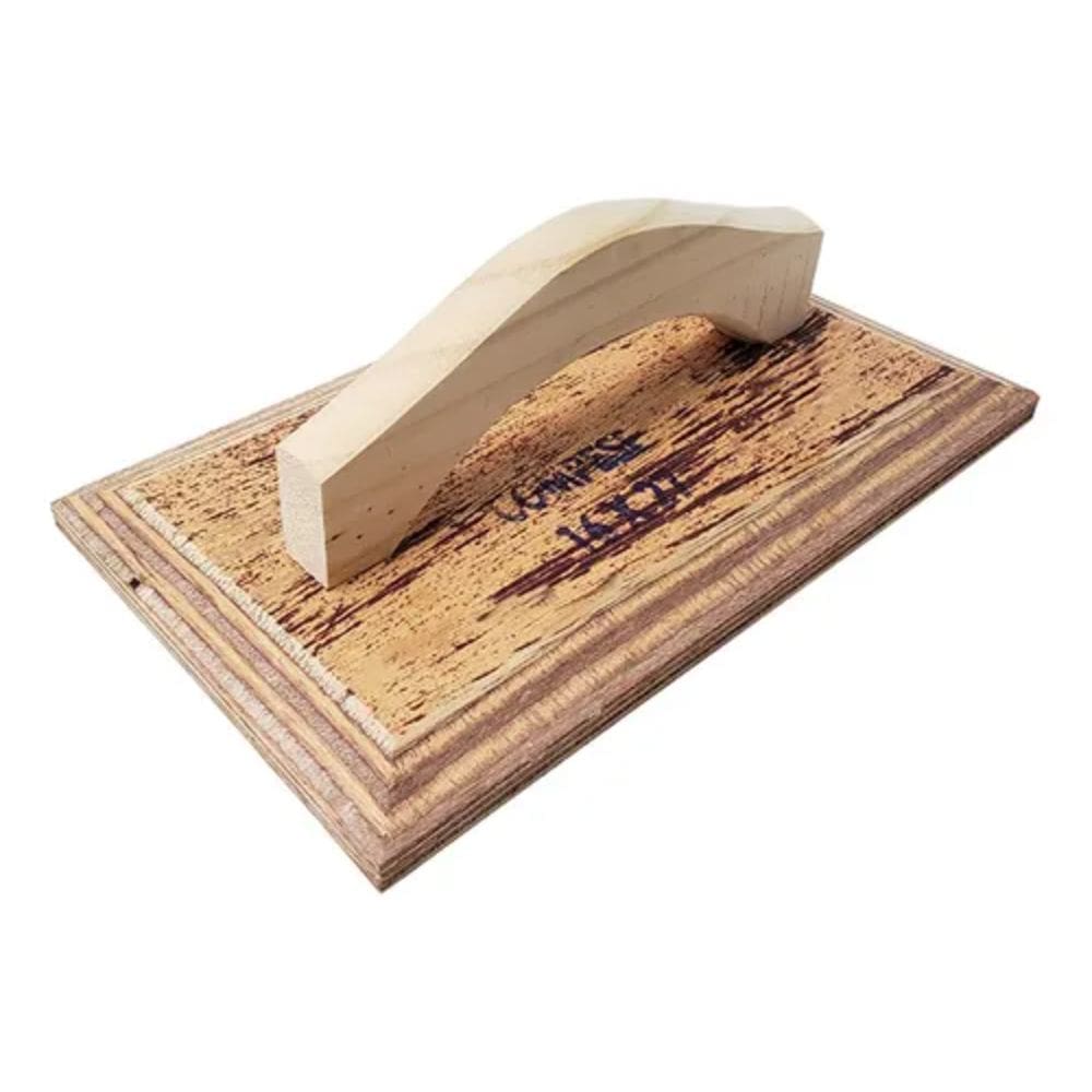 Desempenadeira De Maderite Naval. Marca: Compesp. Tamanho: Comprimento: 27 cm. Largura: 16 cm. Espessura: 1,65 cm. Comprimento do Cabo: 20 cm. Peso: 570 g. Leve e Resistente. Cabo Fixado Através de Pino e Cola. Material: Maderite e Madeira de Pinus