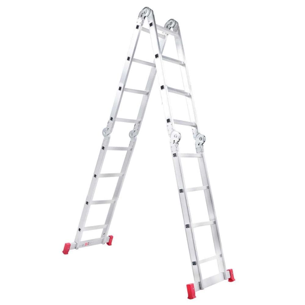 Uma excelente Escada articulada de alumínio, podendo ser utilizado em até 13posições diferentes de acordo com a necessidade do usuário. A Escada Articulada é extremamente versátil, leve e fácil de transportar. Pode ser usada como escada de encosto, escada de pintor em A, andaime e outras dez posições. Suas articulações tem travamento automático. Possui extensão lateral para maior estabilidade, degraus antiderrapantes com maior área de contato, sapatas emborrachadas, e sua carga máxima de trabalho é de 150* Kg. *A Escada Articulada Alumínio 4 x 4 possui 4 partes com 4 degraus.