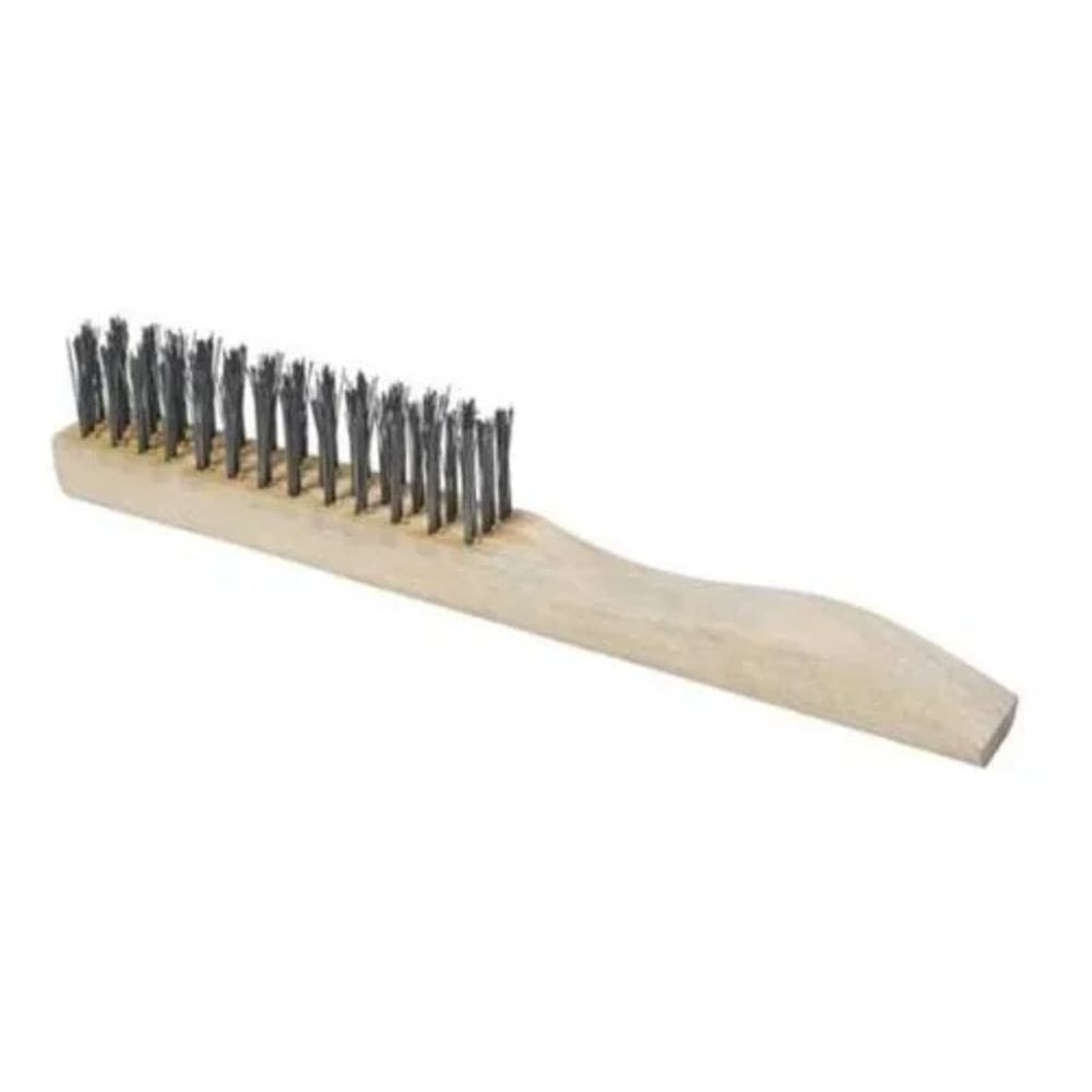 Indicada para a limpeza de peças metálicas, remoção de tintas, remoção de ferrugem e outras impurezas. Escova de aço com base em madeira. Arame temperado.