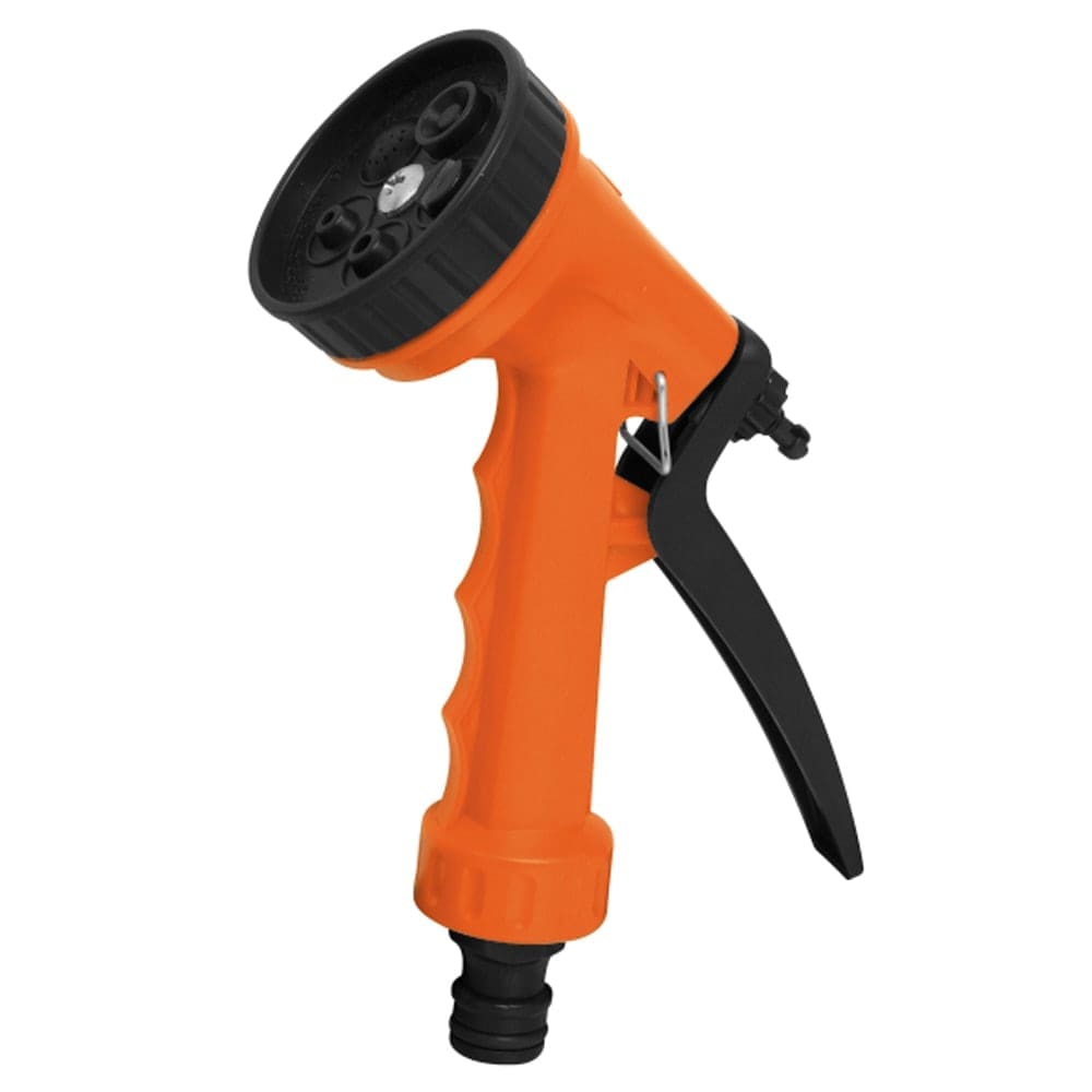 A Ducha 5 Funções Famastil tem trava para uso contínuo e regulagem de água/pressão. Versátil, é indicada para limpeza de calçadas, veículos e jardinagem. Com sistema de engate rápido. Opções de jato: ducha; fino forte; leque; força máxima; névoa. Cabo anatômico, garantindo conforto e aderência no manuseio.