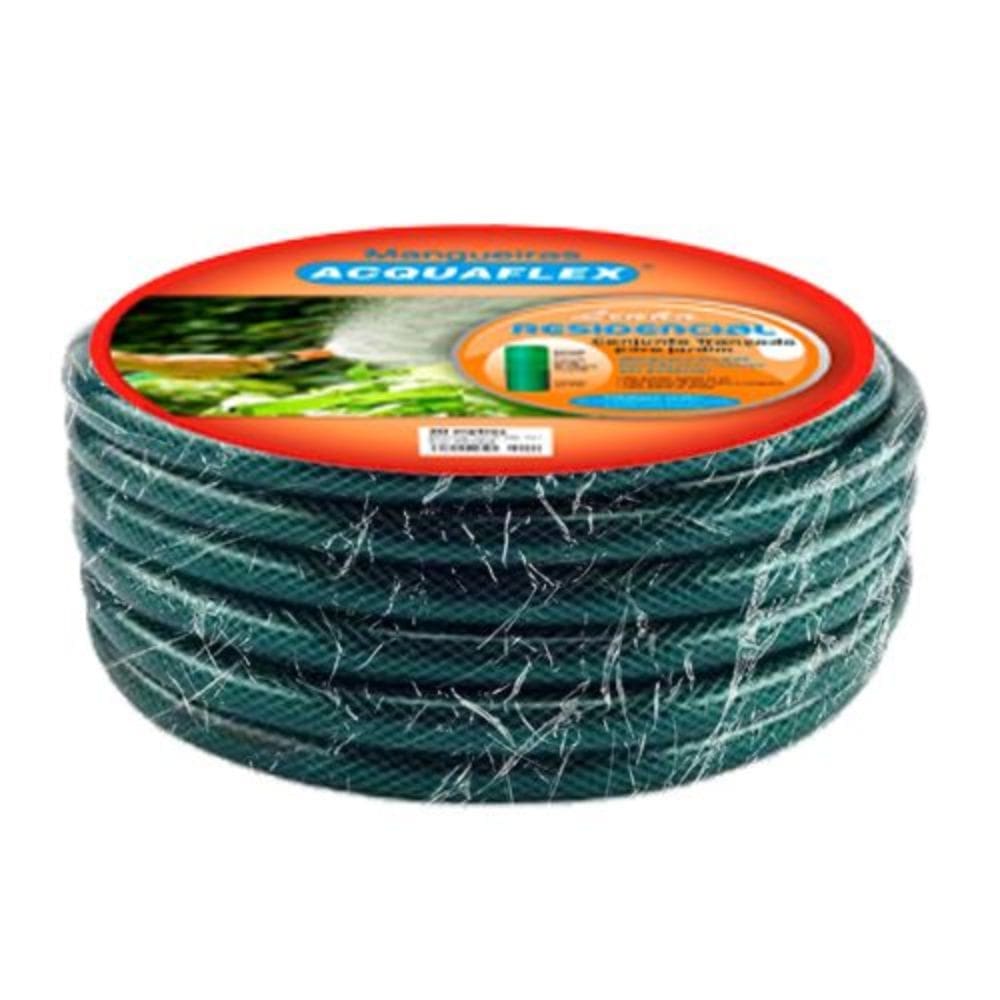Mangueira confeccionada em PVC com reforço em fio poliéster com bico e união para torneira. Para jardinagem por sua resistência à pressão e durabilidade.