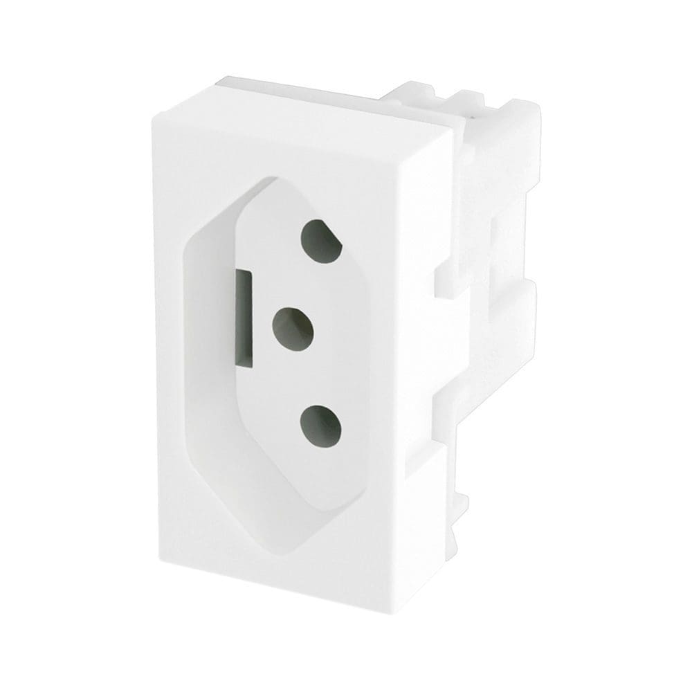 Módulo tomada 2P+T (três pinos) 20A/250V, ideal para aparelhos que consomem muita energia, como forno elétrico, secador de cabelo, microondas etc. Para utilização nas placas das linhas Evidence e Modulare da Fame.