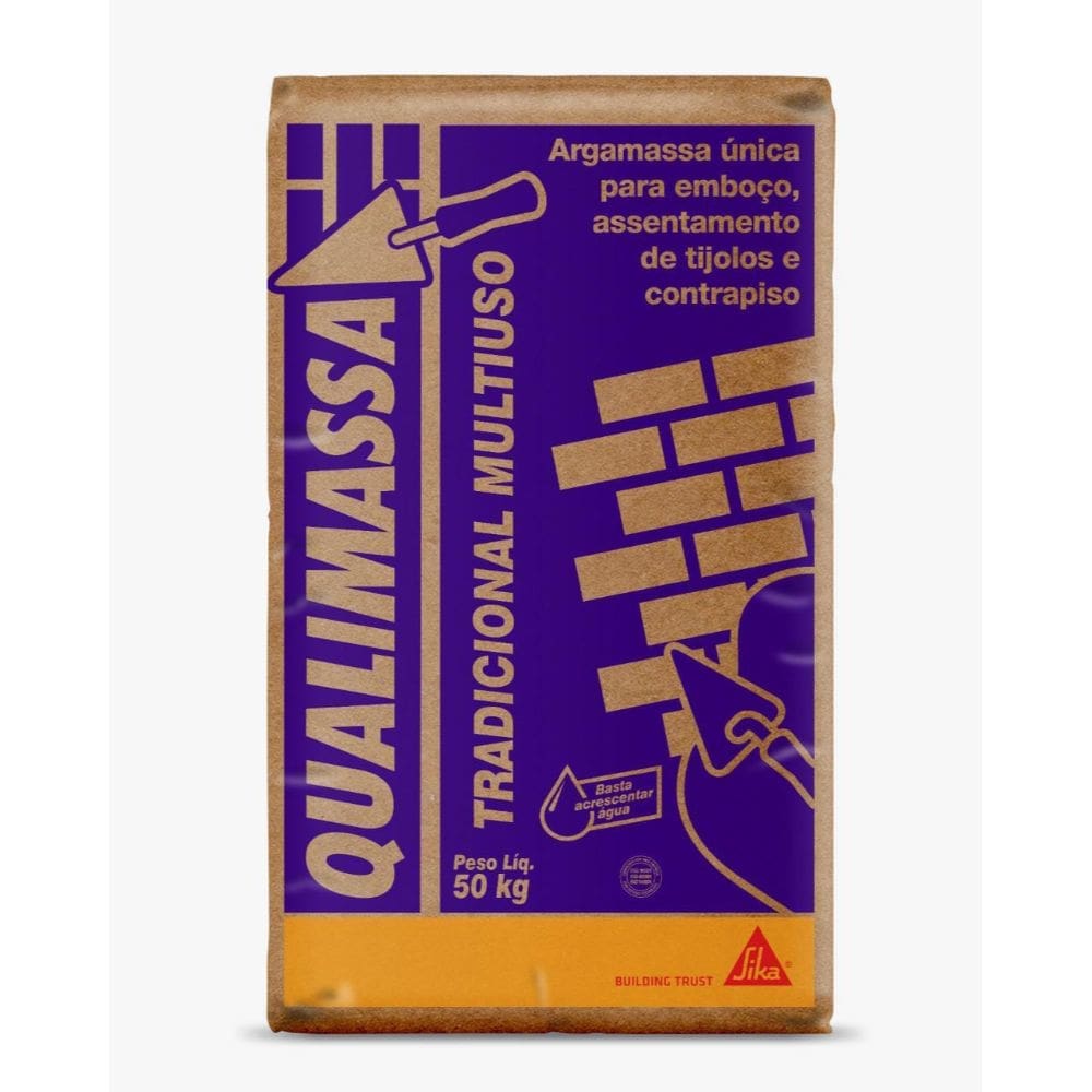 Qualimassa Tradicional Multiuso é uma argamassa industrializada à base de cimento Portland, areia, fíler e aditivos químicos especiais, com características técnicas que possibilitam seu múltiplo uso. Rápida, prática e econômica.