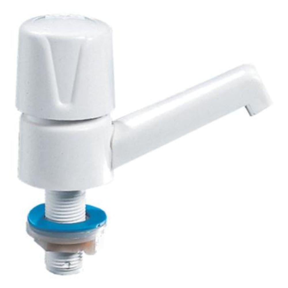 Torneiras plásticas de rosca e bica longa. Ideais para lavatórios. Disponível em duas versões: com bica de 7,5cm e de 10 cm. Rosca de 1/2″. Sistema de mola automática.