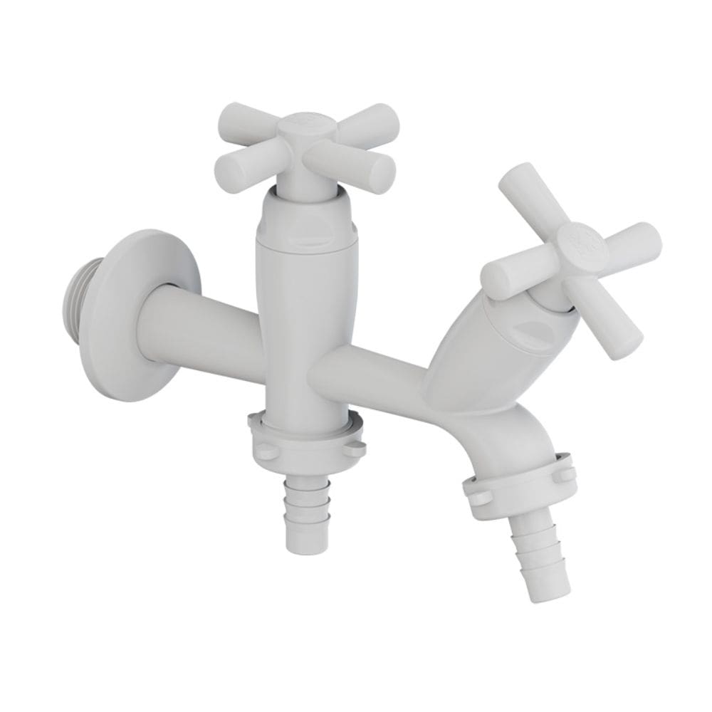 Torneira para Tanque e Maquina Tigre Cross Branca 1/2″ 3/4″. Garanta versatilidade, economia de água e design para sua lavanderia ou área de serviço. O volante desta torneira é redondo e as bicas contêm dupla vedação, que garante segurança contra vazamentos. Possui alta durabilidade. Pratica e eficiente. Resistente, com um sistema de anel deslizante na bica que reforça a estanqueidade. O bico arejador regular a saída de água e garante até 70% redução no consumo. Indicado: Para Tanque e Máquina de lavar.